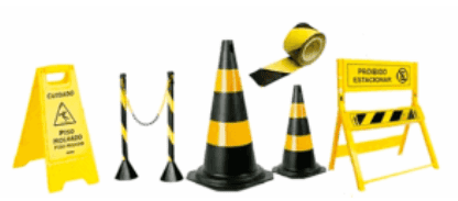 Sinalização de segurança: Placas, faixas e dispositivos luminosos que alertam sobre riscos específicos, áreas restritas e procedimentos obrigatórios.